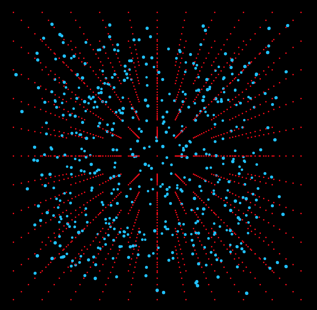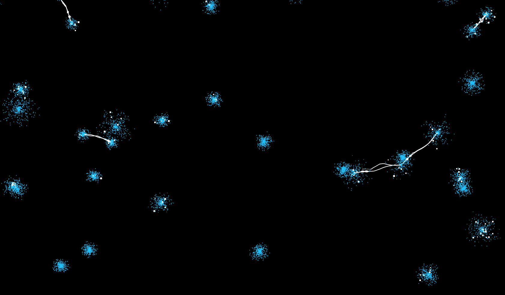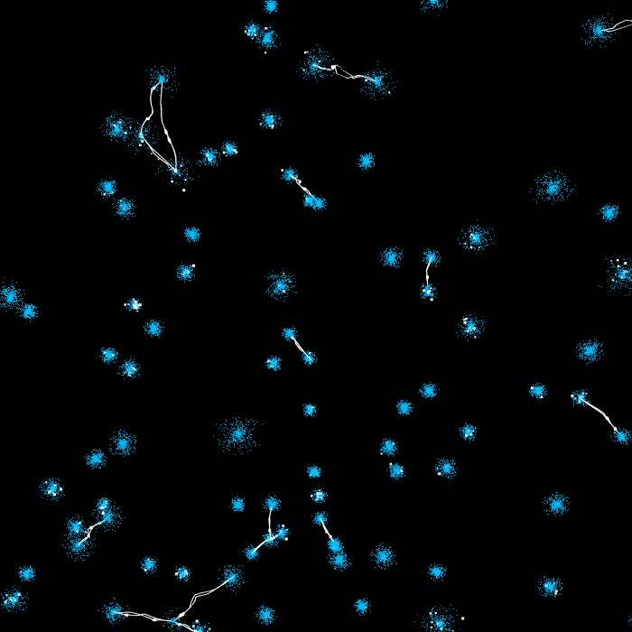 Every ball has a set of particles or “charges” assigned to it. These particles are discharged when they are near other charged balls. Currently, 100 particles are used for the creation of each bolt and every ball has a maximum number of particles assigned to it which limit the number of neighbors it can have. For example, if a ball has 500 particles, it can only connect with 5 other balls through electrostatic discharge.