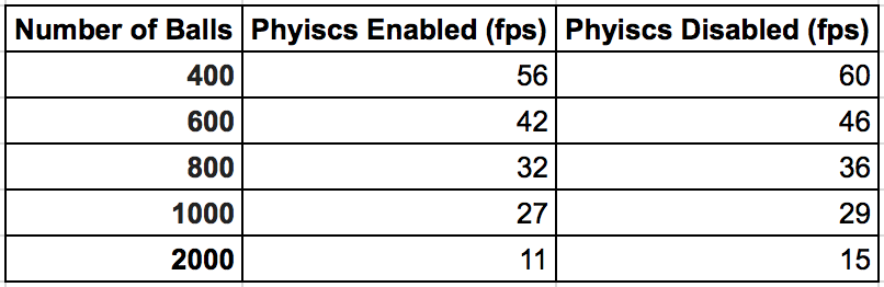 I compared the performance of setting particle positions directly instead of using steering behavior. There was a performance boost however it wasn’t great as shown in the chart below. That is probably because I’m using the same shaders with transform feedback buffers. Since I no longer need to keep track of the particle pervious positions or velocities since they’re all determined by the ball and texture buffers I no longer need to use transform feedback.