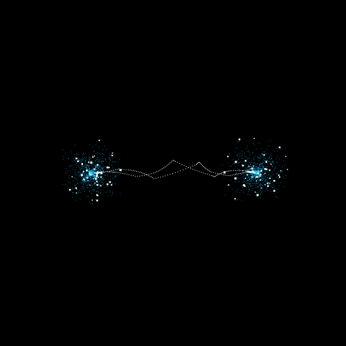 I currently simulate each bolt using 100 particles. To mimic the shape of a bolt I used a combination of triangle waves, sin waves and cos waves applied with different parameter on the particles x, y and z position. To align the particles along the line that connects both balls. I first assign an index value for each particle from 0 to 99. I then use this value to linearly interpolate between the particle’s current ball position and the neighboring ball’s position.